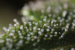 Use a loupe or a strong magnifying scope to take a very close look at the trichomes; the tiny glandular stalk and head sometimes referred to as “crystals”. Up close, they resemble little glass mushrooms with a stem that forms a bulbous round clear top. Inside that gland head resides the psychoactive compounds (THC, CBD etc). Harvest when the majority of the gland heads begin to go cloudy white and before they’ve gone completely amber. You can harvest when they’re mostly amber if you desire a more lethargic stone.