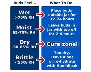 Open all your jars regularly to inspect and air out your bud. It’s important that you’re checking on your buds at least every 24 hours during the beginning stages. If you smell ammonia or the outside of buds feel moist, it means buds are too wet and need to air out before closing the jars again. If it smells more like cannabis every day, it means you’re doing it right. Feel free to "inspect" your bud during the curation process by smoking it. When your bud is consistently in the "Cure Zone" it can be stored, or smoked.