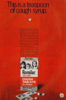 During the 1960s and 1970s, dextromethorphan became available in an over-the-counter tablet form by the brand name Romilar. In 1973, Romilar was taken off the shelves after a burst in sales because of frequent misuse, and was replaced by cough syrup in an attempt to cut down on abuse.[3]