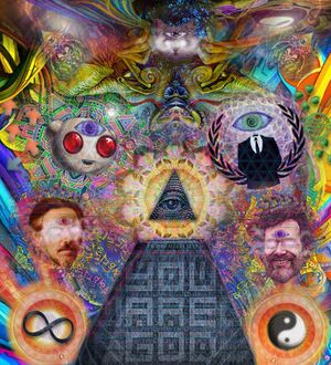 The internet's transcension - A humorous composition piece created by Josikins to serve as an example of psychedelic artwork. The selected images represent the artist's most significant personal influences in regards to their exploration of the field of psychonautics.