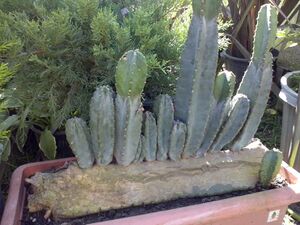 A long cactus column can be laid on its side on the ground (like a log), and eventually roots will sprout from it and grow into the ground. After time, sprouts will form and cactus columns will grow upward out of it along its length.