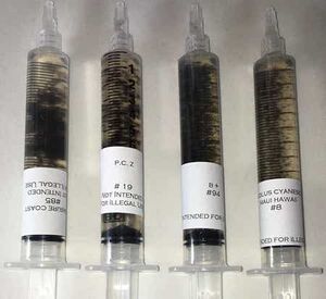 A spore syringe is a syringe that contains a mixture of sterile water (usually distilled) and hydrated fungal spores in it. They can be used to introduce spores into the substrate in the inoculation stage of cultivating mushrooms.