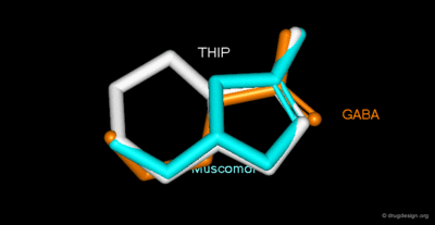 Most of the known 3-hydroxyisoxazoles may be regarded as conformationally restricted bio-isosteres of neurotransmitters such as gamma-aminobutyric acid (GABA), glutamic acid or N-methyl-D-aspartic acid (NMDA)[2]. Muscimol, gaboxadol and GABA are in their bioactive conformations, because of this similarity, muscimol and gaboxadol bind to certain GABA-receptors.