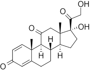 Prednisone is a synthetic corticosteroid drug that is particularly effective as an immunosuppressant drug. It is used to treat certain inflammatory diseases (such as moderate allergic reactions), some autoimmune diseases, and (at higher doses) some types of cancer, but it has significant adverse effects.